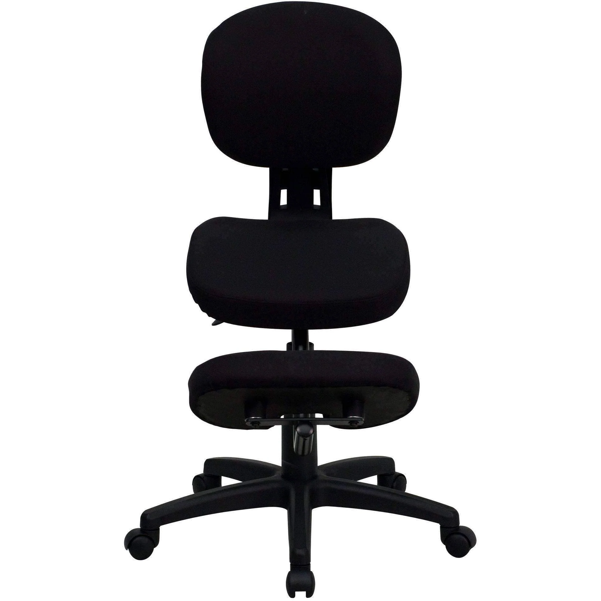 Ergonomic Kneeling Chair in Black Fabric with Back and Handles